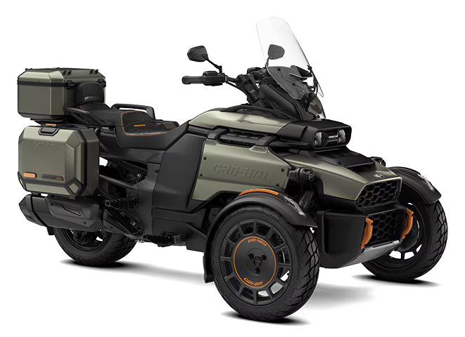 IVA incluídoDescubra o Can-Am Canyon RedRock 1330 ACE em Verde Musgo Satinado, o veículo de 3 rodas ideal para aventuras em qualquer terreno. Com motor Rotax potente, suspensão SmartShox e sistema LinQ para acessórios, oferece estabilidade, conforto e versatilidade para todos os condutores.