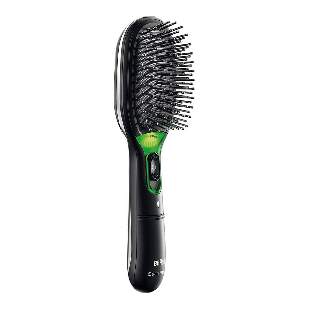 IVA incluídoEscova satin hair 7 br710e braun com iontec e cerdas suaves, nero. escova com iões ativos que aumentam visivelmente o brilho do cabelo desde a primeiro uso. cerdas naturais para que se pentear suavemente. almofada desmontável para facilitar a limpeza da escova. funciona com pilhas incluídas. desliga automaticamente