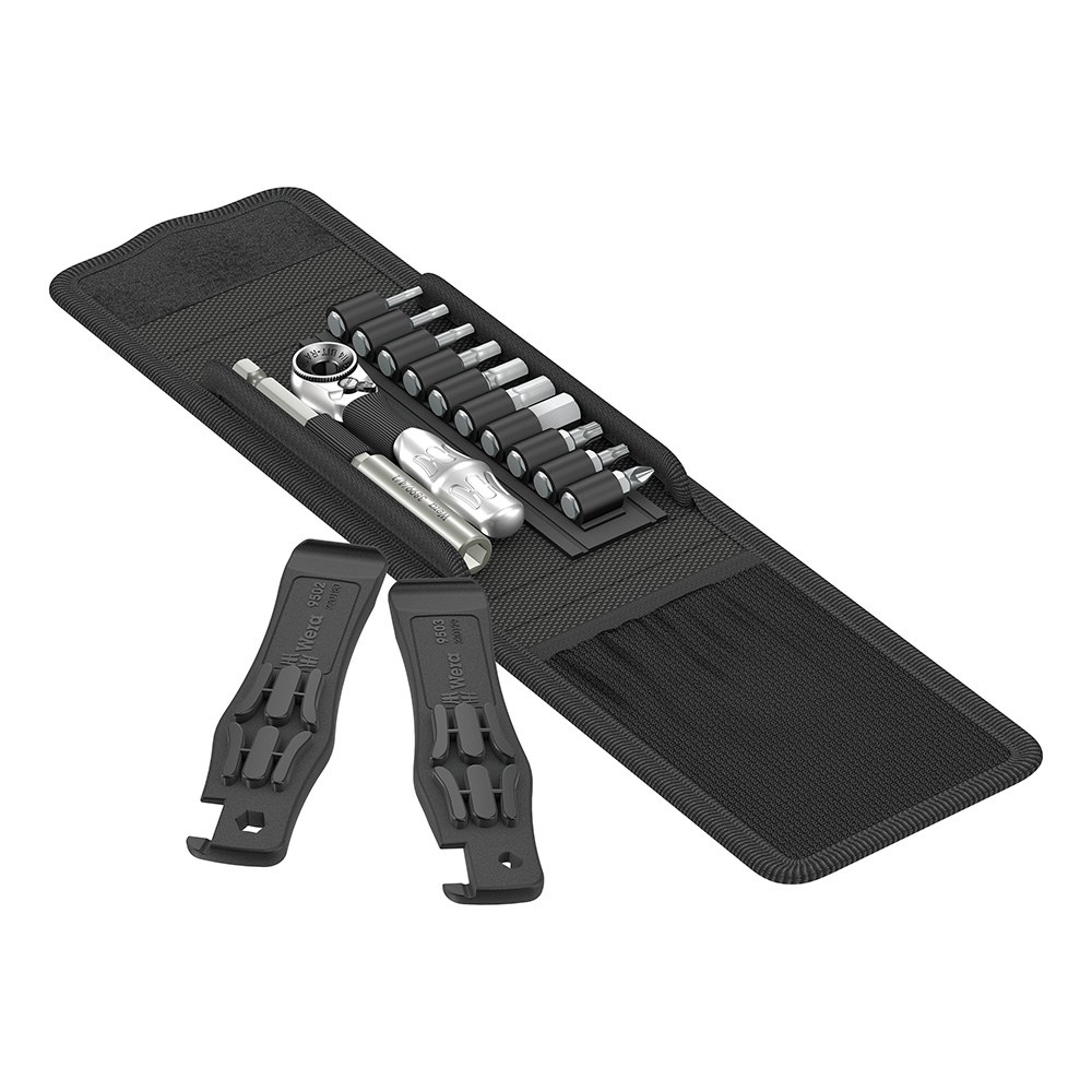 Ferramentas para os perfis mais frequentes de parafusos em bicicletas normais, de montanha e elétricas. bolsa dobrável de material têxtil robusto, compacta e atraente. inclui um roquete mini, uma extensão, duas alavancas de pneus com funções adicionais e dez pontas: 1x¼ pol x87.0, 1x¼ pol x100, 1xph2x25, 1xtx25x25, 1xtx10x25, 1×2.5×25, 1×2.0x25, 1×3.0x25, 1×4.0x25, 1×5.0x25, 1×6.0x25, 1×8.0x25, 1×105.0, 1×105.0, 1×50.0x70.0