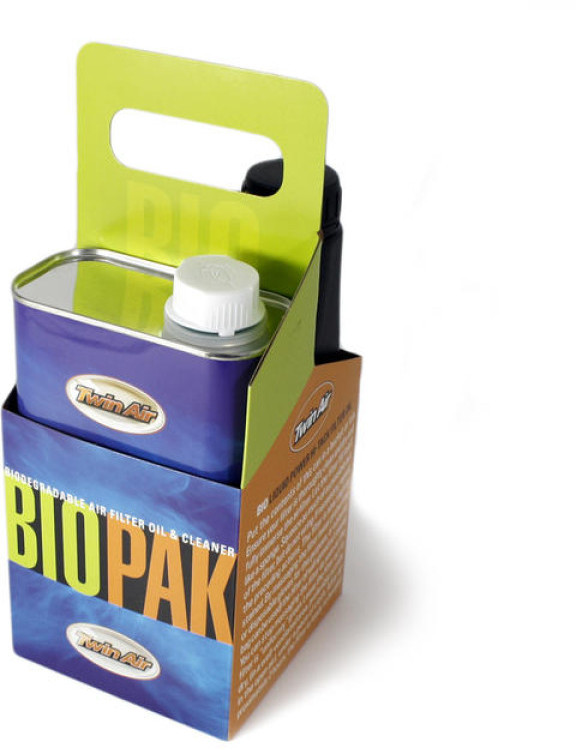 IVA incluídoKit Twin Air para limpeza e manutenção de filtros de ar em espuma, com óleo e líquido biodegradáveis que protegem e prolongam a vida útil do filtro.