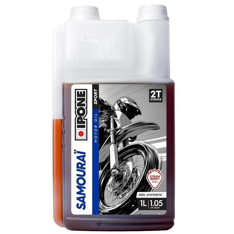 O Óleo Mistura 2T Ipone Samourai Racing Morango é um lubrificante 100% sintético especialmente formulado para motores a 2 tempos, com base éster que garante uma lubrificação eficaz e proteção máxima do motor. A sua fórmula avançada assegura um desempenho superior, prolongando a vida útil do motor e otimizando a potência. Além disso, apresenta um agradável aroma a morango, tornando a experiência mais agradável. Disponível em embalagens de 1 litro com medidor para mistura, é a escolha ideal para quem procura qualidade e eficiência em lubrificação. Certificado com API TC, é perfeito para motos de alta performance que exigem o melhor cuidado.
