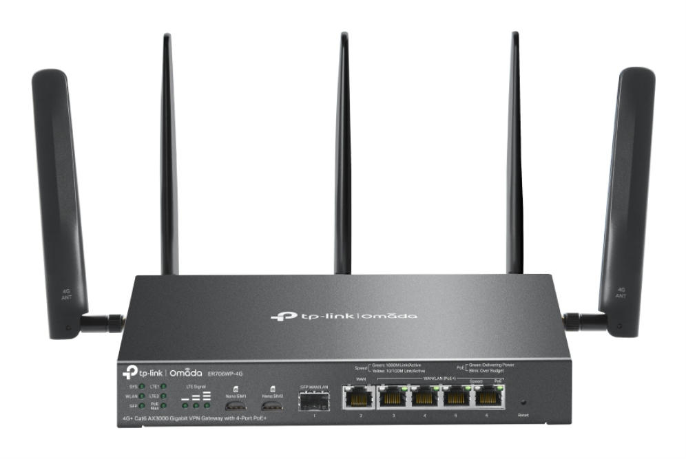 TP-Link ER706WP-4G router Inalâmbrico Gigabit Ethernet Doble banda (2,4 GHz / 5 GHz) preto