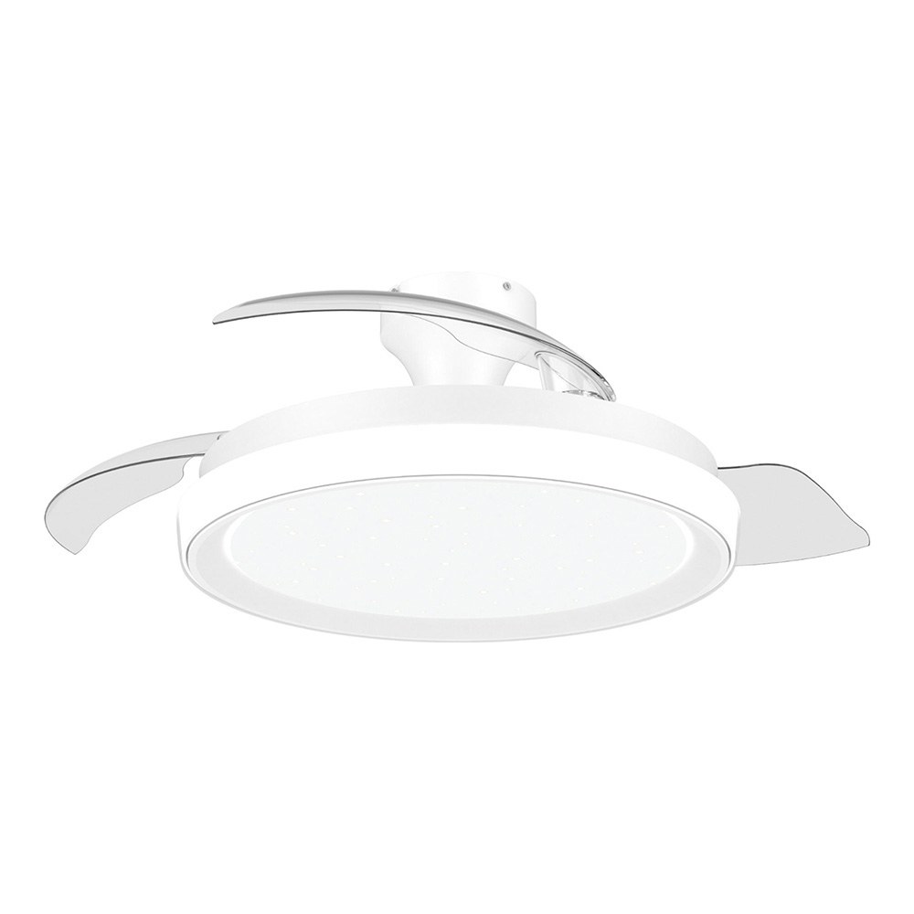 Ventilador de teto com pás retráteis, led 3 cct, motor dc 28 w + led 35 w, modelo bliss, branco / estrelado, ø106 cm